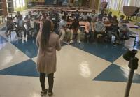 Brittney Houser, a Selma native, shares positive messages with girls at Payne Elementary School.