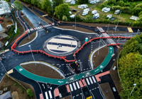 National News Britain’s controversial £2m Dutch-style roundabout opens By TalkerUpdated Aug 6, 2025 Councillor Robin Bromham for Leverstock Green Ward tries out the new roundabout in Hemel Hempstead. (James Linsell Clark via SWNS)