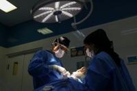 Iranian surgeon Hamidreza Hosnani and an assistant perform surgery at his private clinic in Tehran