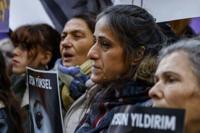 Filiz Demiral, centre, whose daughter was murdered by a man, joins the growing ranks of Turkish families fighting to demand justice for loved …