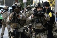 Men in fatigues and carrying semi-automatic rifles could be seen around a federal building