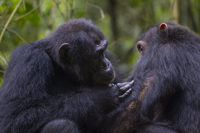 Three female chimpanzees, which are one of the primates in which males dominate