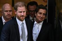 Prince Harry leaves court with his barrister, David Sherborne, after testifying in June that he had suffered lifelong press invasions