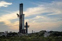 The SpaceX Starship rocket stands on the launchpad ahead of its scheduled launch from the SpaceX Starbase