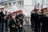 The US Army Band performs in honor of the Army's 250th birthday at the Tomb of the Unknown Soldier at Arlington National Cemetery -- ahead of …
