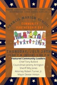 Perry County Francis Marion School to hold Community Partnership Day Nathan Prewett Nathan Prewett Jul 21, 2022 Francis Marion School will hold a Community Partnership Day on Thursday, July 28 from noon to 5 p.m.Â