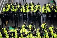 Police officers in Seoul as people gather for a rally near President Yoon Suk Yeol's residence
