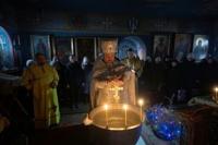 Military medic Natalya carried a jug of water blessed by priests at the Sviatogirsk monastery in east Ukraine as she celebrated Orthodox Epiph…