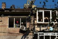 Ukrainian rescuers at a damaged residential building following the mass Russian strike on Kyiv