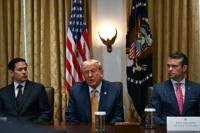 US President Donald Trump, alongside Secretary of State Marco Rubio (L) and Secretary of Defense Pete Hegseth (R), at a cabinet meeting on Jul…