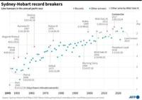 National News Two killed in wild weather on Sydney-Hobart yacht race John SAEKI Dec 26, 2024 Chart showing the line honours winners of the Sidney-Hobart yacht race since 1945, and the progression of records