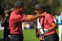 Tiger Woods reacts with son Charlie Woods after Charlie's hole-in-one at the PNC Championship