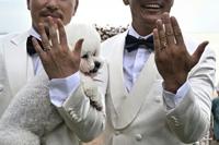 Song and Wang were surrounded by dozens of close friends and their ring-bearing small fluffy dog on their wedding day