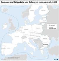 Map of the European Union and the Schengen zone after the EU announced that Romania and Bulgaria will join the zone, which has no internal bor…