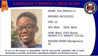 News UPDATED: Emergency missing child alert canceled for 12-year-old from Montgomery Jun 14, 2022 Image from ALEA's Twitter page.Â