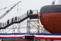 National News US shipbuilders, a shadow of what they were, welcome Trump's support ARIANA DREHSLER Mar 8, 2025 Celebrants prepare to smash the traditional bottle of Champagne on the bow of the USNS Harvey Milk ahead of its launching in San Diego, California