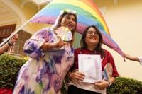 Members of the LGBTQ community celebrate after the Thai parliament passed the final senatorial vote on the same-sex marriage bill in 2024