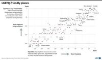 Chart combining the rankings of Spartacus Gay Travel Index 2024 and the Equaldex, which measure current status of LGBT rights, laws, and freed…