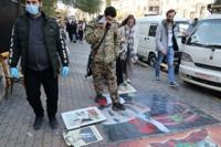 National News Syrians protest after video of attack on Alawite shrine ANWAR AMRO Dec 25, 2024 Syrians step on portraits of toppled president Bashar al-Assad in Damascus