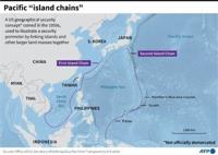 National News Taiwan says 'troublemaker' China expands military drills around island John SAEKI, Nicholas SHEARMAN Dec 10, 2024 Map illustrating the US "first island chain" and "second island chain" security concept in the Pacific