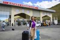 Homa, a 40-year-old Iranian, arrives in Turkey through the Razi-Kapikoy border crossing, north-eastern Turkey on June 18, 2025