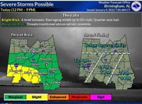 News Severe storms possible this afternoon, tornado watch issued Nathan Prewett Updated Mar 31, 2025 Severe storms for much of the Black Belt is possible this afternoon and a tornado watch is in effect until 4 p.m.Â