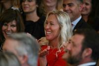 US Rep. Marjorie Taylor Greene (R-GA) waits for US President Donald Trump to sign the No Men in Women's Sports Executive Order