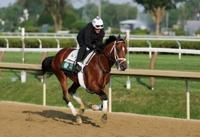 Preakness winner Journalism trains on in preparation for the 157th Belmont Stakes at Saratoga Race Course