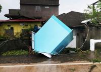 Photo courtesy of John Marshal Aquino shows a blown over structure along a street in Panganiban, Catanduanes