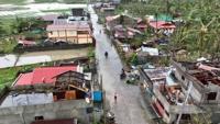 Frame of a handout video from Panganiban Cesar Robles shows houses damaged by Typhoon Man-yi in Catanduanes province