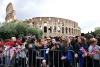 National News Charles and Camilla pose at Colosseum in pomp-filled Italy visit Phil Noble Apr 8, 2025 Pupils at British schools in Rome line the security barriers to say hello to the royals