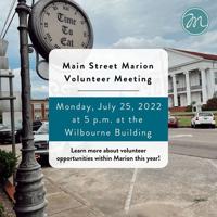 Perry County Main Street Marion Volunteer Meeting is next Tuesday Nathan Prewett Nathan Prewett Jul 22, 2022 The Main Street Marion Volunteer Meeting is this coming Tuesday, July 26 at 5 p.m.Â