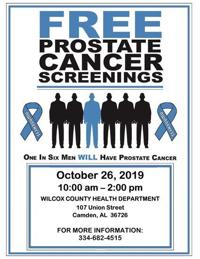 On Oct. 26 Urology Health Foundation will provide free prostate screenings for men of 40 years or older at Wilcox County Health Department in Camden. According to the Urology Health Foundation, one in six American men will be affected by prostate cancer, which is also the second leading cause of death in men. One in […]