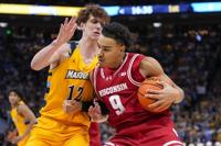 National Say cheese: No. 5 Marquette rolls past No. 11 Wisconsin Jeff Hanisch-Imagn Images Dec 7, 2024 Dec 7, 2024; Milwaukee, Wisconsin, USA; Wisconsin Badgers guard John Tonje (9) drives for the basket against Marquette Golden Eagles forward B…