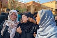 People gathered at Khan Yunis's Nasser Hospital to mourn those killed in an Israeli strike