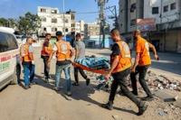 Palestinian rescuers carried a victim of an Israeli strike in Gaza City