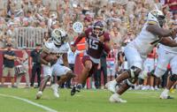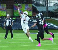 The Dumas Demon varsity football team fell to the Randall Raiders 27-14 in the district opener in Canyon Thursday, Oct. 10. Quarterback Colton Mills finished with 200 yards passing and a score and ZJ Jara finished with 40 yards and a score on the ground.