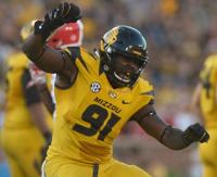 Defensive end Charles Harris celebrates after getting a third down tackle during the first quarter against the Georgia Bulldogs on Sept. 17, 2016, on Faurot Field.